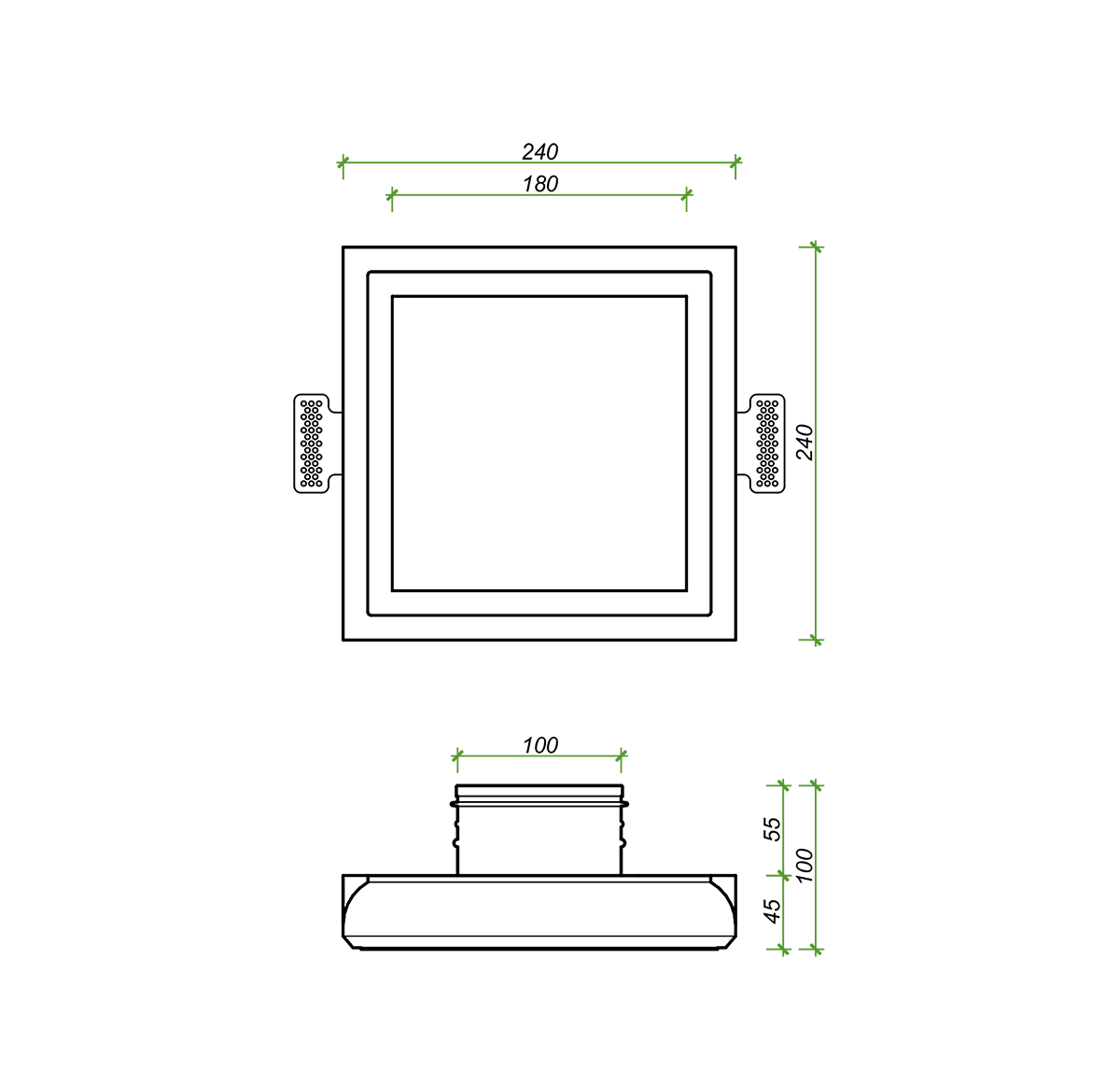 Габаритный размер (мм) - 240 х 240 х h100